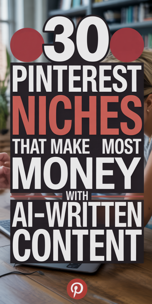 Below are 30 niches we’ve tested or recommended frequently, each lends itself to AI-written copy, repeatable pin templates, and strong monetization paths.